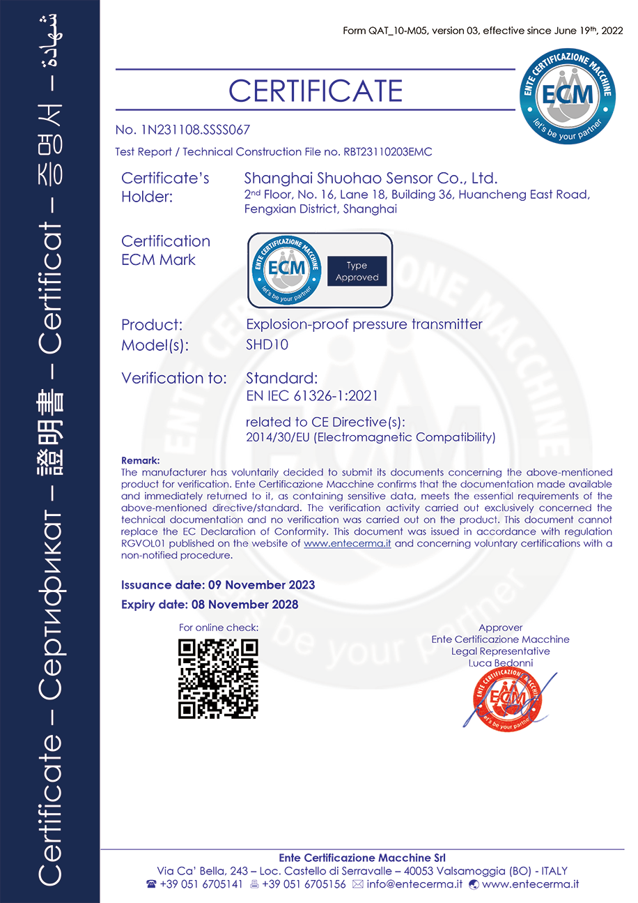 压力变送器CE证书